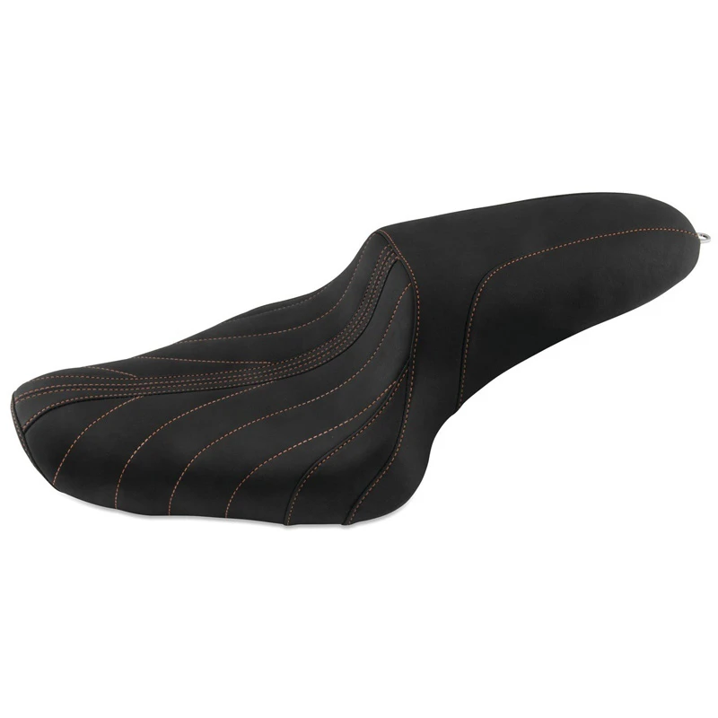 Mustang’s 74105MO Revere Journey Gravity One-Piece Seat, Black with Mandarin Orange Stitching is made specifically for Harley-Davidson Sportster (2004-2021).
