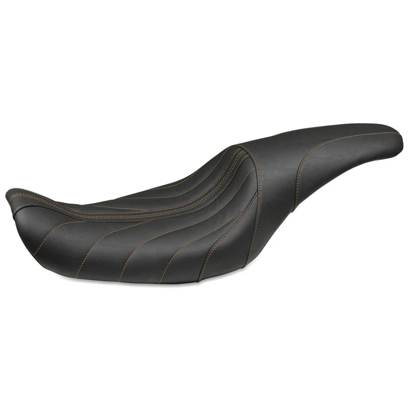 Mustang’s 74109MO Revere Journey Gravity One-Piece Seat, Black with Mandarin Orange Stitching is made specifically for Harley-Davidson Dyna (2006-2017) models listed below.