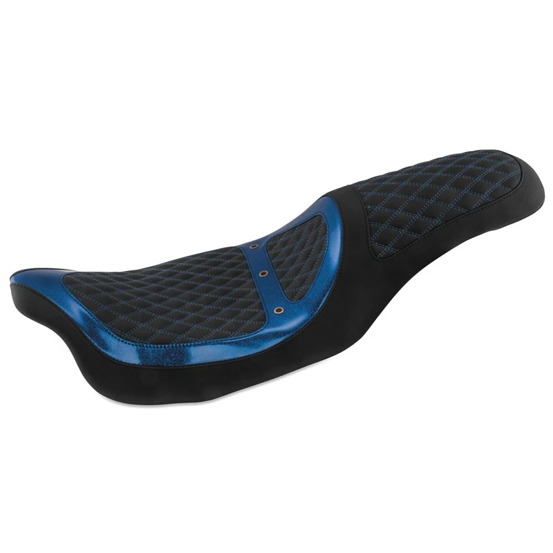 Mustang’s 74113MB Revere Runner Vent One-Piece Seat, Black with Blue Stitching & Blue Metal Flake Accents is made specifically for Harley-Davidson FL Touring (2008-2021) models listed below.