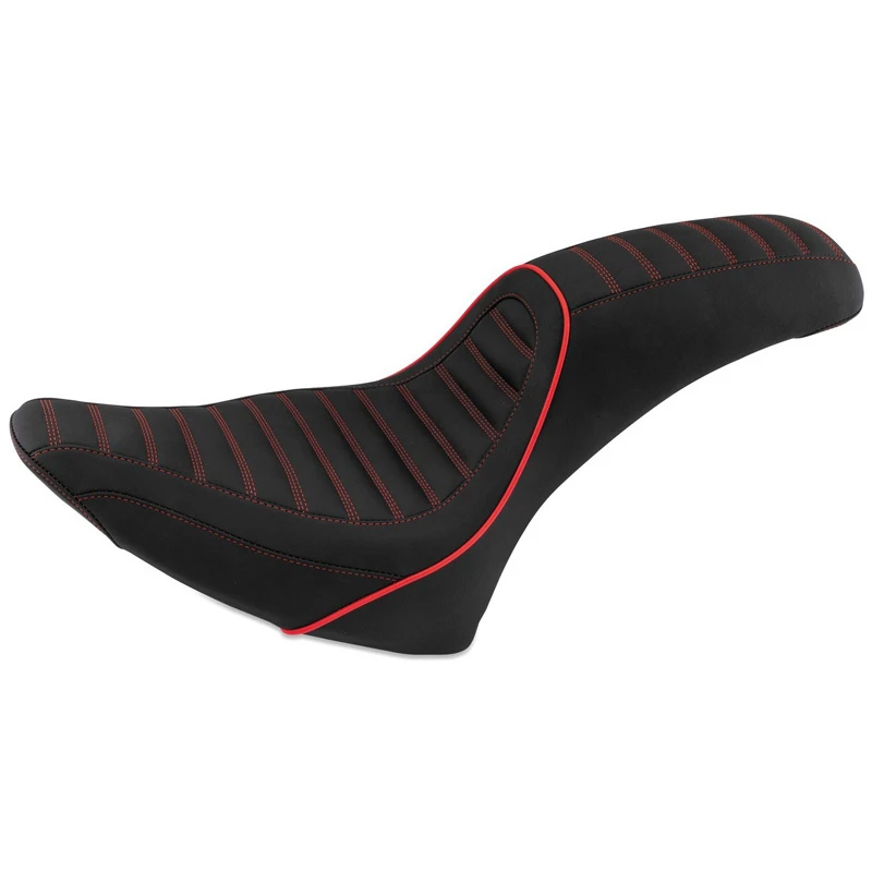 Mustang’s 74118AB Revere Journey Stripe One-Piece Seat, Black with American Beauty Red Stitching is made specifically for Harley-Davidson Softail Standard Rear Tire (2000-2015) models listed below.