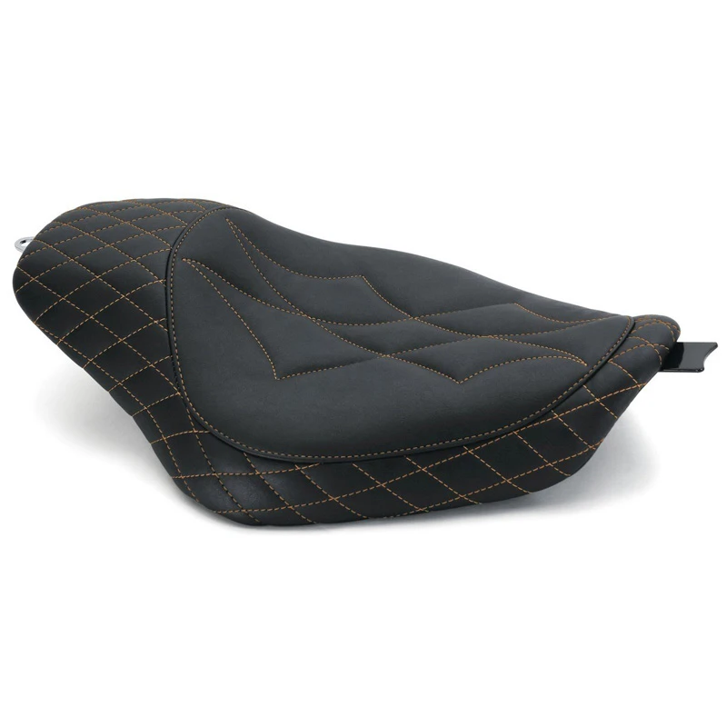 Mustang’s 75101MO Revere Journey Diamond Solo Seat, Black with Mandarin Orange Stitching is made specifically for Harley-Davidson Sportster (2004-2006) & Sportster (2010-2021).