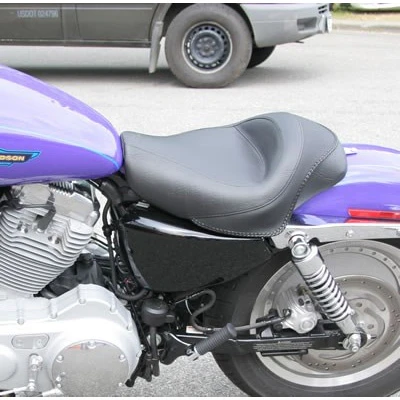 Mustang offers a solo for the Harley-Davidson® XL Sportster 2004-2015, for 2.1 & 3.3 gallon tanks, with a no-frills, vintage look. Features braided edge skirt.