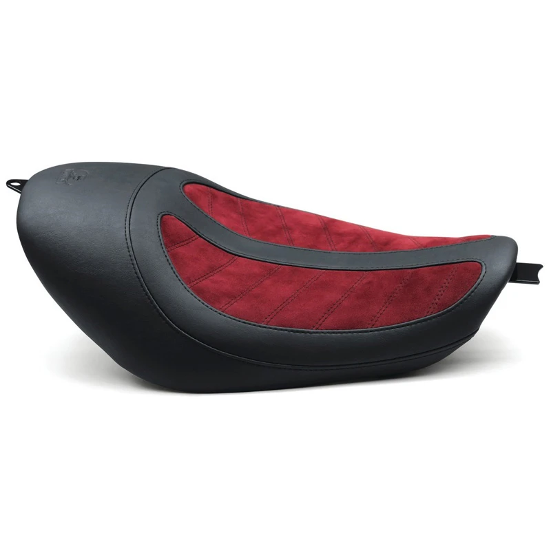 Mustang’s 76297 Skyline Signature Series Skyline by Fred Kodlin Solo Seat, Two-Toned with Maroon Alcantara Accents, Black is made specifically for Harley-Davidson Sportster (2008-2021).