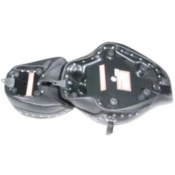 Trimmed with chrome studs, this seat offers a full bucket that is internally supported by steel wings shaped like a small police solo for maximum comfort. Extends forward for additional driver back support.