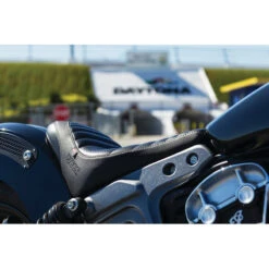 All baseplates for these seats are made of marine-grade, 3/16″ thick fiberglass, finished in high gloss gel coat. All brackets are riveted in place. Exposed brackets are bright chrome plated. Polyurethane rubber bumpers are strategically located and riveted to the baseplate to prevent it from touching the frame and fender and to minimize vibration. Bumpers will not crack with age and are ozone protected. The hidden brackets have a tough, black epoxy powder coat finish and the edges of all baseplates have a steel reinforced, impact absorbing vinyl edge trim to protect the seat cover Mustang’s unique internal support wings are added to the baseplate to provide maximum driver and passenger comfort. These wings support the entire width of the molded foam. This feature is found on most Mustang touring seats. - Baseplates for Mustang Seats for Harley-Davidson®
