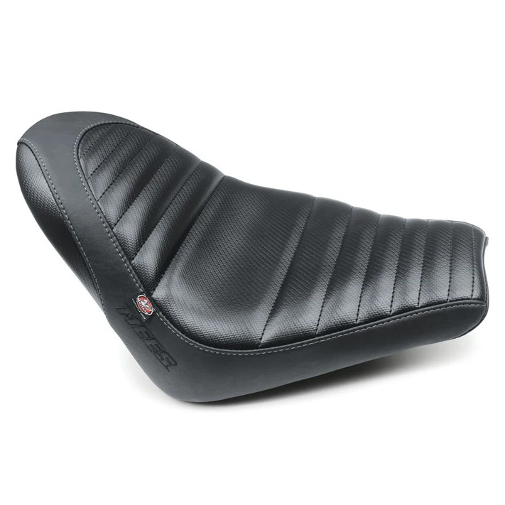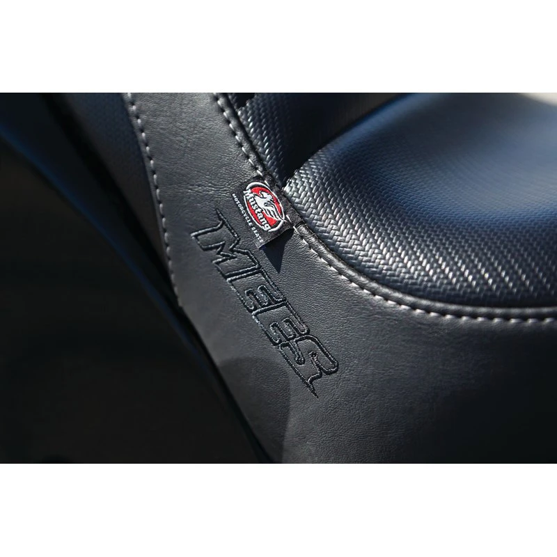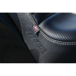 The edges of all baseplates have a steel reinforced, impact absorbing vinyl edge trim to protect the seat cover. Polyurethane bumpers are strategically located and riveted to the baseplate to prevent it from touching the frame and fender and to minimize vibration. Mustang’s unique internal support wings are added to the baseplate to provide maximum driver and passenger comfort. These wings support the entire width of the molded foam. This feature is found on most Mustang touring seats. Bumpers will not crack with age and are ozone protected. Solos with built-in driver backrests have the receiver welded and reinforced to the baseplate for strength. Foam surrounds the hardware to provide maximum comfort.