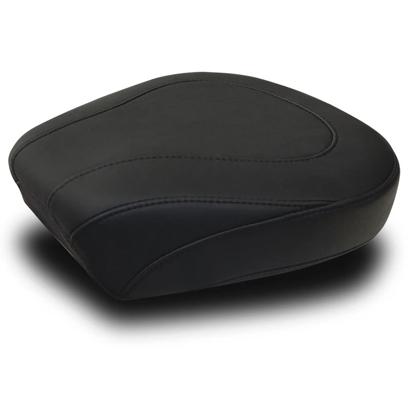 The edges of all baseplates have a steel reinforced, impact absorbing vinyl edge trim to protect the seat cover. Polyurethane bumpers are strategically located and riveted to the baseplate to prevent it from touching the frame and fender and to minimize vibration. Mustang’s unique internal support wings are added to the baseplate to provide maximum driver and passenger comfort. These wings support the entire width of the molded foam. This feature is found on most Mustang touring seats. Bumpers will not crack with age and are ozone protected. Solos with built-in driver backrests have the receiver welded and reinforced to the baseplate for strength. Foam surrounds the hardware to provide maximum comfort.