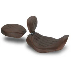 This Mustang 76709 Wide Tripper Rear Seat with Detailed Diamond Pattern in Distressed Brown is made specifically for Harley-Davidson Dyna (2006-current)