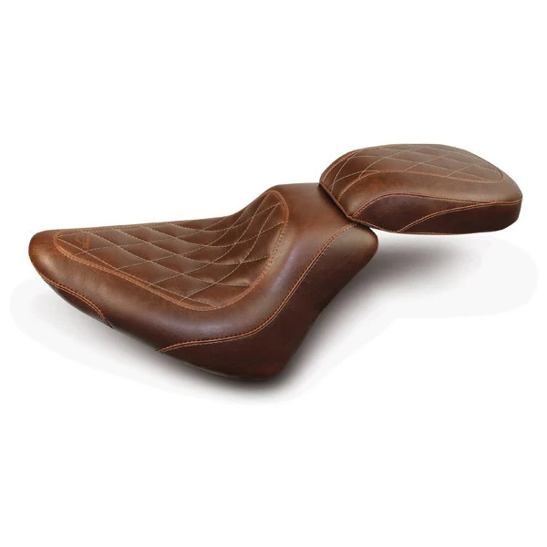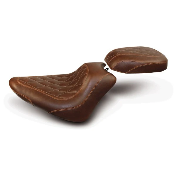 This Mustang 76767 Wide Tripper Passenger Seat in Distressed Brown with Diamond Stitch is made specifically for Harley-Davidson Softail FXS Blackline (2011-13) & FLS Slim (2012-current)