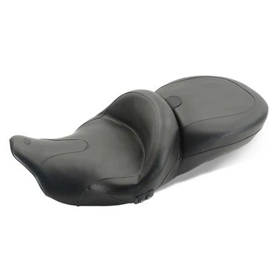 Note: Specifically designed to fit all ’14-later Rushmore models due to its wider passenger seat, but will also fit any ’08-’13 FLHR, FLHX and FLTR models without a Tour-Pak or saddlebags. Vinyl cover has a deeper gloss-black color compared to other Mustang FL Touring seats. Installation on ’14-’18 FL Touring requires use of H-D adapter 69200722 or 69201599, depending on the year. If the accessory port is already in use, install H-D adapter 70264-94A or 70270-04, depending on the year, to add additional ports. Seat will fit with handrail. All seating position notes are compared to the standard Electra Glide touring position. If your seat is a reduced-reach, extended-reach or low seat, these comparisons may not apply.