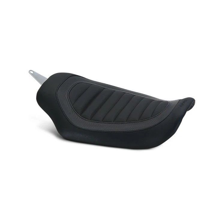 Jody Perewitz, the fastest American woman on a V-Twin, has designed this low and lean solo seat for the 1996-2003 Dynas. The 10″ wide seat is built with quality in mind, featuring a 16-gauge steel baseplate and classic tuck-and-roll stitching framed by a carbon-fiber vinyl insert. Includes a fender nut for ease in installation.
