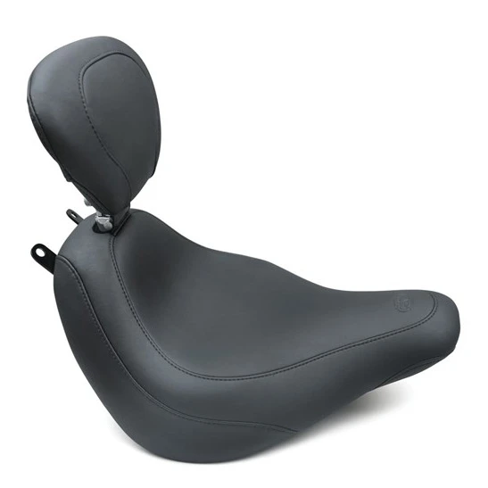 The edges of all baseplates have a steel reinforced, impact absorbing vinyl edge trim to protect the seat cover. Polyurethane bumpers are strategically located and riveted to the baseplate to prevent it from touching the frame and fender and to minimize vibration. Mustang’s unique internal support wings are added to the baseplate to provide maximum driver and passenger comfort. These wings support the entire width of the molded foam. This feature is found on most Mustang touring seats. Bumpers will not crack with age and are ozone protected. Solos with built-in driver backrests have the receiver welded and reinforced to the baseplate for strength. Foam surrounds the hardware to provide maximum comfort.