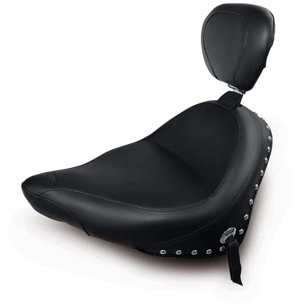 This Mustang 79382 Wide Touring Solo Seat with Backrest, Studs is made specifically for Victory Kingpin (2003-2013), Vegas (2003-current) and 8-Ball (2003-2014)