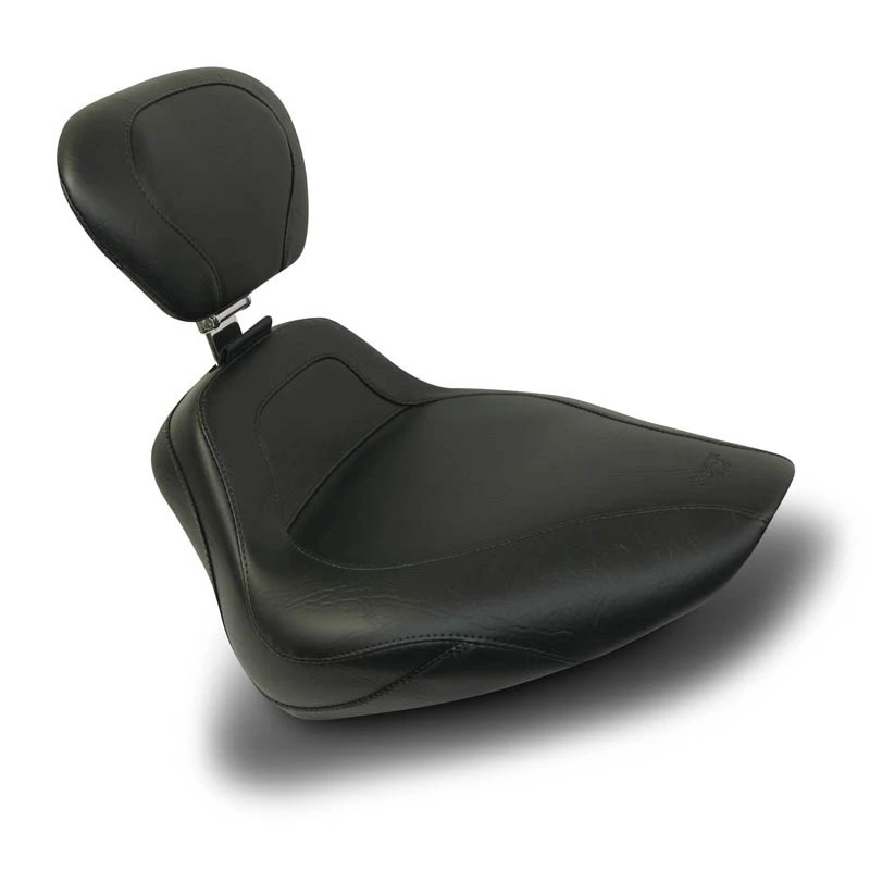 Mustang’s Sport Touring seats offer the rider the comfort of a touring seat with a sporty, stylish look. Available with an adjustable, removable backrest. Mustang’s built-in backrest offers more features than any other brand. A no-frills, Vintage look. Chrome solo bolts sold separately – part #78033.