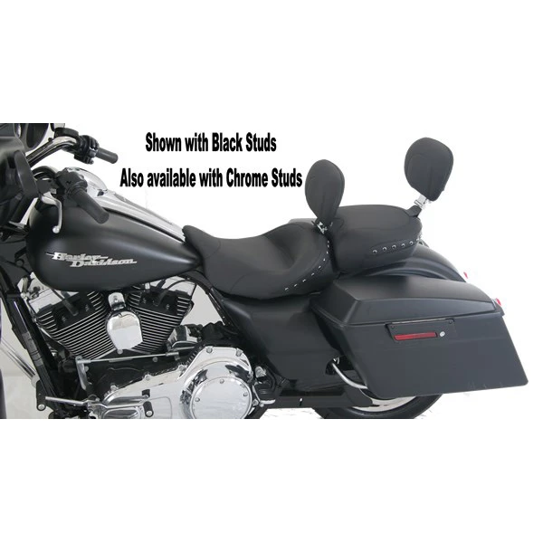 This Mustang 79675 Recessed Passenger Seat with Chrome Studs/Backrest is made specifically for Harley-Davidson FL Touring (1997-current)