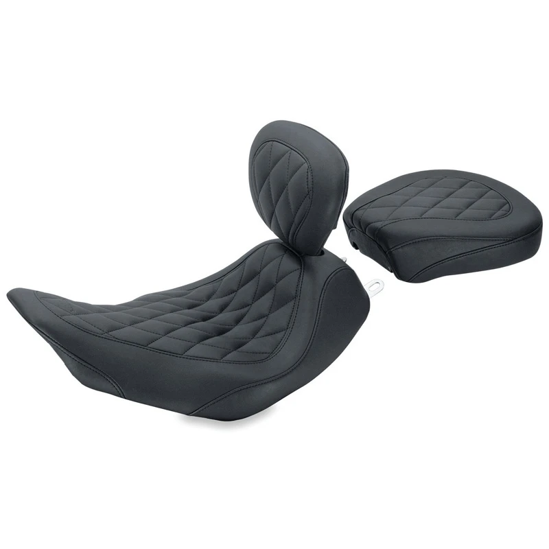 Cut low with a wide 13″ driver seat that has extra width in the hip area for all-day comfort. Places the rider slightly lower and further than typical stock seats. Features detailed stitch work in the highly durable synthetic glove-leather cover available in original or diamond stitched styles. If you’re looking for maximum lumbar support, choose the Wide Tripper with built-in driver backrest that’s fully adjustable up/down forward/back and easily removable without tools. Pair the solo with a matching 10.5″ wide passenger seat for comfortable 2-up riding.