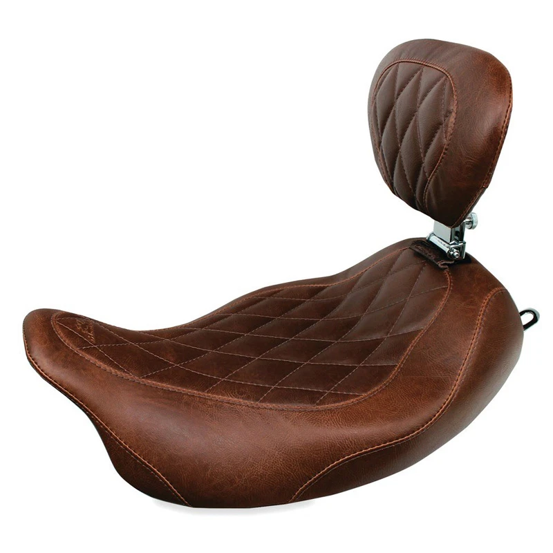 Mustang’s 79811 Wide Tripper Solo Seat with Backrest, Diamond, Distressed Brown is made specifically for Harley-Davidson FL Touring (2008-2021).