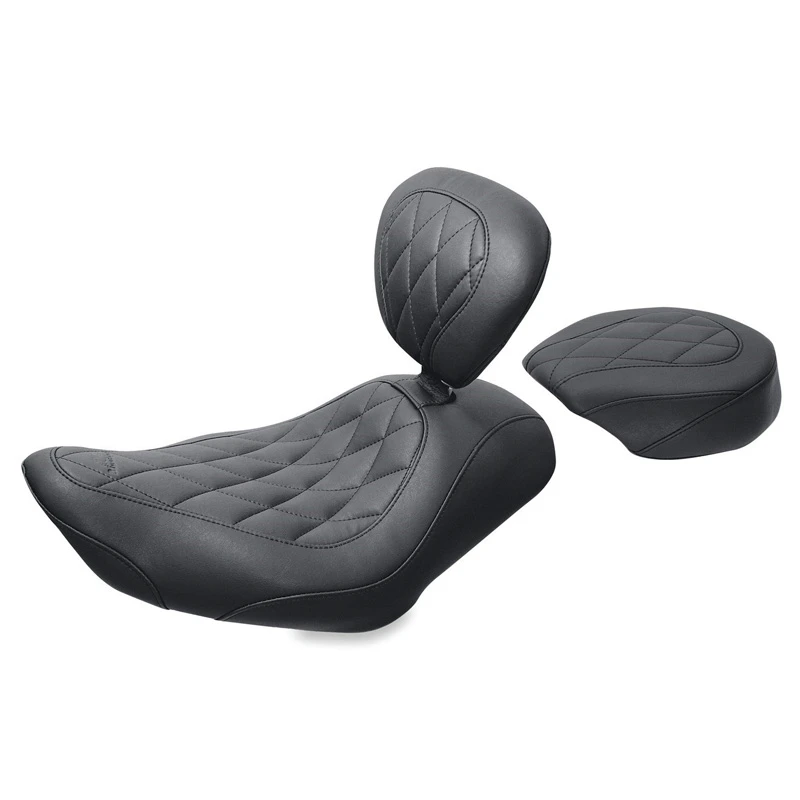 Cut low with a wide 12″ driver seat that has extra width in the hip area for all-day comfort. Places the rider slightly lower and further than typical stock seats. Features detailed stitch work in the highly durable synthetic glove-leather cover available in original or diamond stitched styles. If you’re looking for maximum lumbar support, choose the Wide Tripper with built-in driver backrest that’s fully adjustable up/down forward/back and easily removable without tools. Pair the solo with a matching 8.5″ wide passenger seat for comfortable 2-up riding.