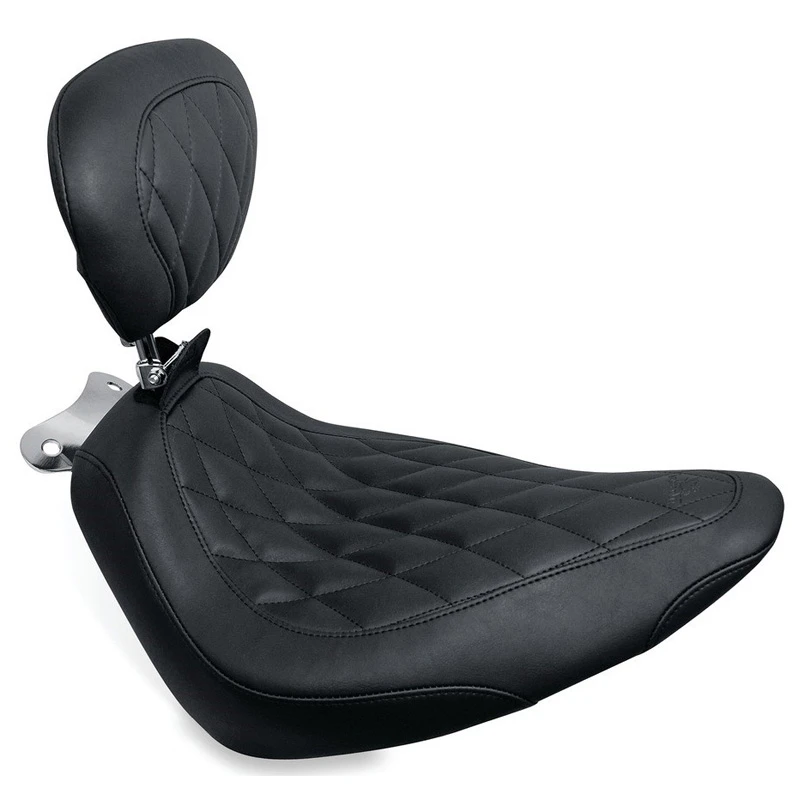 Mustang’s 79821 Wide Tripper Solo Seat with Backrest, Diamond, Black is made specifically for Harley-Davidson Softail Standard Rear Tire (2000-2015).