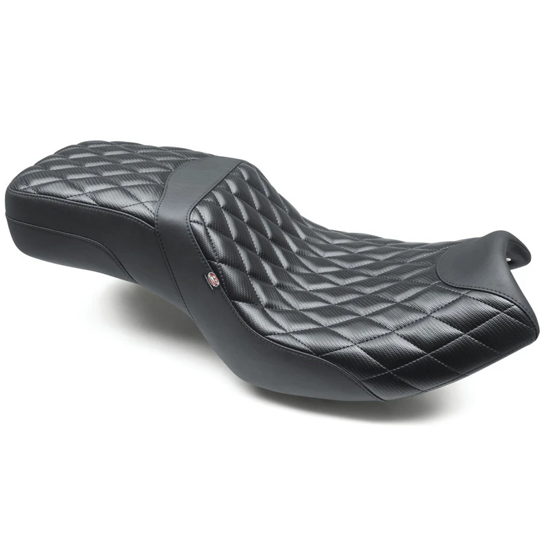 Just like the bike’s performance, the Mustang Squareback for Indian Challenger models delivers a sporty demeanor perfectly balanced with long-distance touring capabilities. The hand-sculpted 13″ wide bucketed rider area and signature Squareback wall keep the rider comfortably planted at a similar reach to the controls compared to stock, whether cruising or hammering the throttle. Passengers enjoy a spacious and plush 9” wide seating area with ample support thanks to Mustang’s proprietary controlled-density foam formula. The perfect finishing touch is a handsewn cover blending our smooth and carbon fiber-style premium vinyl in a mesmerizing diamond stitch pattern.