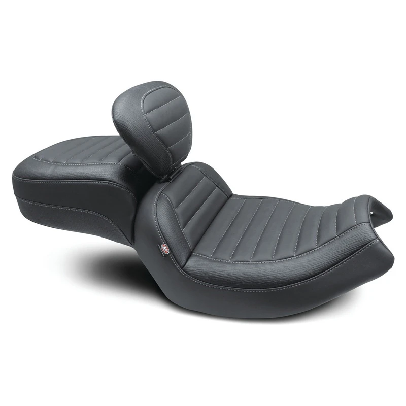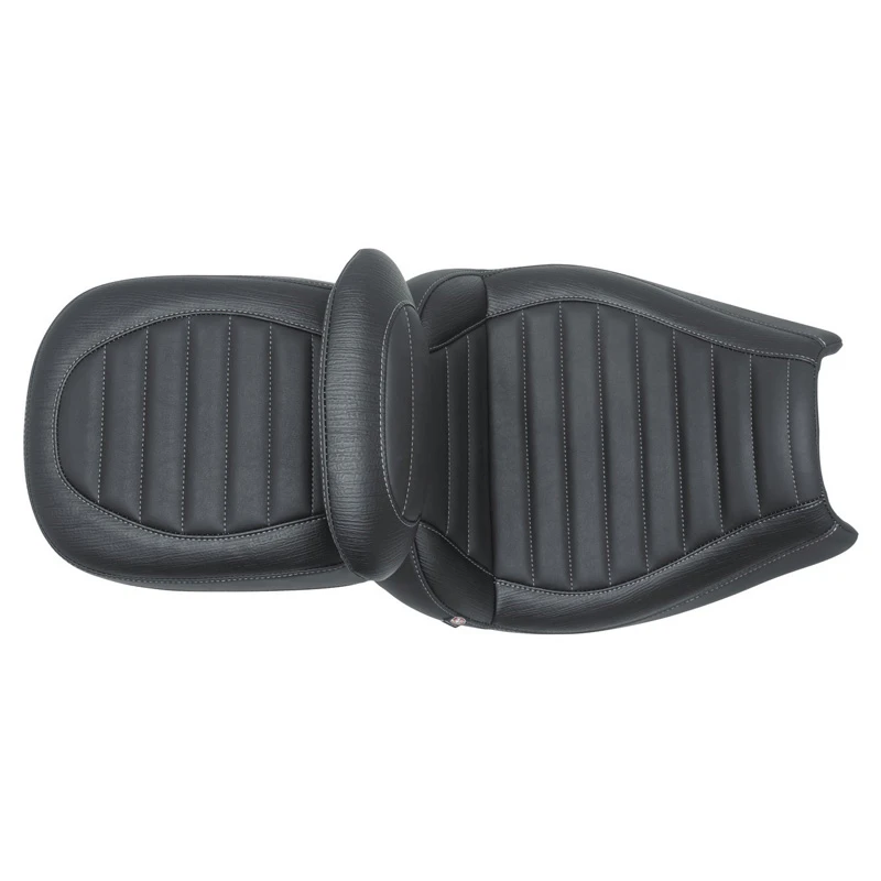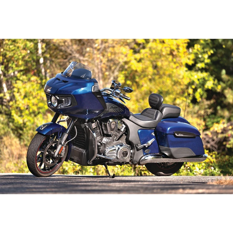 “Challenge” the limits of yourself and your machine with the Mustang Standard Touring seat for Indian Challenger models. The Standard Touring is designed for riders who feast on mile markers and want all-day comfort combined with curb appeal. Unlike other touring seats, this finely hand-sculpted 2-up saddle accentuates the sharp lines of the Challenger with its sleek bucket styling that sits riders “in” the motorcycle vs. “on” it. Available with or without a built-in receiver for a fully adjustable/removable driver backrest, the 14.5″ wide rider and 10″ wide passenger areas are both wider than stock. Combine that with the massive upgrade in support from Mustang’s proprietary controlled-density foam formula, and you’ve got a recipe made for miles of long-haul enjoyment.