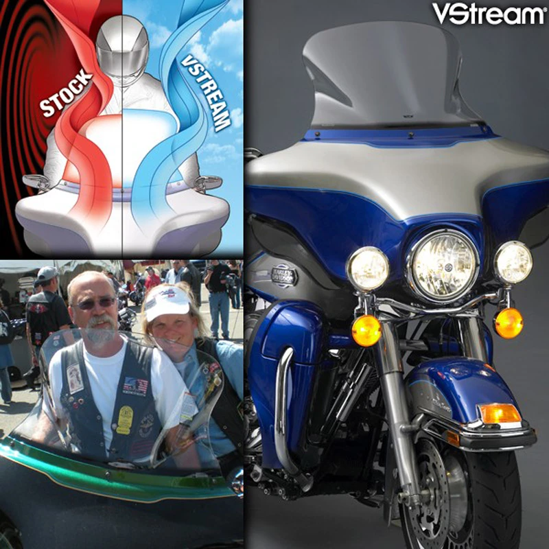 The patented “V” shape and advanced dimensional contours push the wind vortex away from the rider’s head, resulting in a peaceful, quiet riding environment. The passenger’s comfort is improved as well and stereo users will notice it’s not necessary to turn up the volume as much!