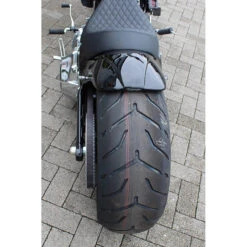 Kit includes fiberglass rear fender, LED tail light, seat base plate without foam, and mounting hardware. The fender can accommodate up to 240 mm tire. Very agressive 18 inch fender for that unique look.