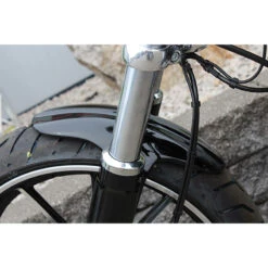 Replaces original fender. Unique style high quality front fender made in Germany for stock tire size and other sizes. Fiberglass construction for that exclusive look. Small sport fender for that special minimalistic look that no one else has. Looks perfect when combined with our Chin Fairing also available on our webpage.
