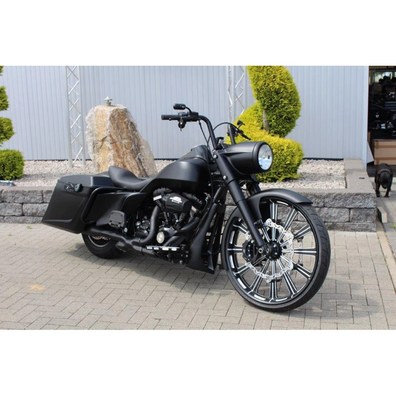 Requires the Removal of the Crash Bars. Easy to install bike specific fitment. Highest quality Fiberglass German construction which is custom made for you. Includes Spoiler/Fairing, mounting kit and metal grill. This unique style will set you apart from the crowd and will add class to your ride.