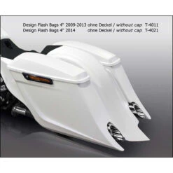 A pair of stretch side cases design to work with our stretch rear fender number and our side covers NLC-T-4100 sold separately. The side cases are 4 inches longer that stock and will look beautiful with our matching fender sold separately NLC-T-4031. Top quality german construction in fiber glass for that perfect fit. Features dual muffler cut outs. Cases are ship without top lids and will accept your stock lids.