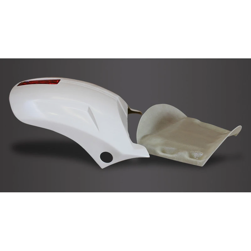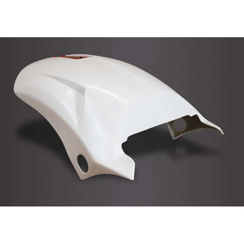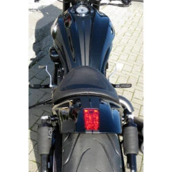 Rear Fender and seat kit. Includes fiberglass fender, mounting hardware and seat base plate. Can fit a 240 to 260 mm rear tire. Electrical CDI unite must be relocated by the air box. Original tail light from 2012 V-Rod to be reused. Does not includes foam for seat. For that special dual tail light look.