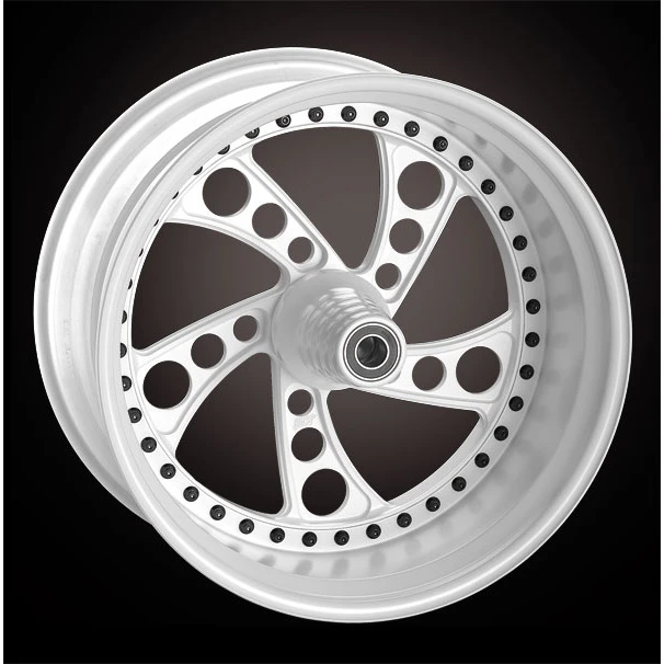 - Our special design is bolted together from both sides so you have beautuful bolt heads on both sides of the wheel and no nuts on one side.