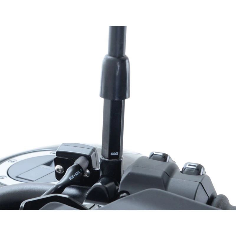 These R&G Mirror Risers are designed to improve visibility behind the motorcycle by raising the mirrors 45 mm (1.77″) to offer an unobstructed view of second place and other traffic behind you. Machined from 6082 T6 aluminum and anodized in black for a factory appearance.