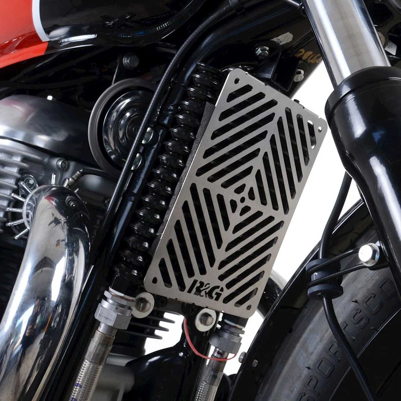 R&G Racing’s SCG0013SS Stainless Oil Cooler Guard is made specifically for Royal Enfield Interceptor & Continental GT 650 (2019-current).