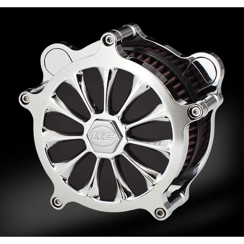 RC Components AC-121C Airstrike High Velocity Air Cleaner, Cynical Chrome is made specifically for Harley-Davidson models.