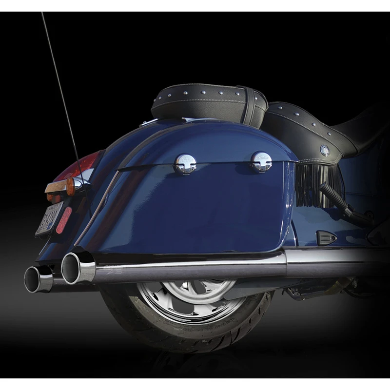 - RCX Exhaust 4.0″ Slip-on Mufflers for Indian Chieftain and Roadmaster models, with Thunder Chrome Tips.