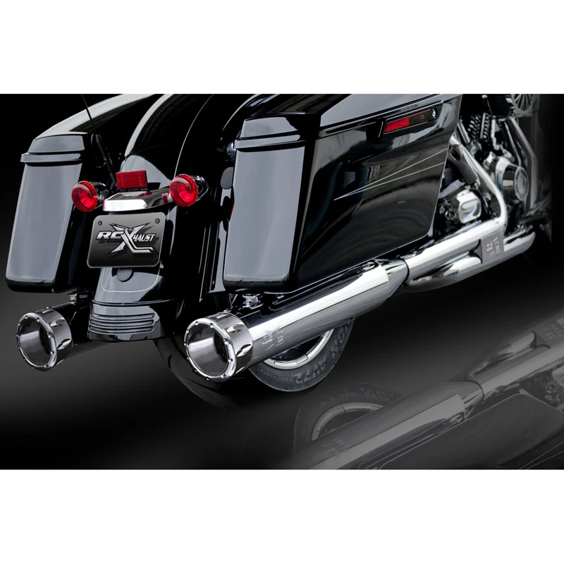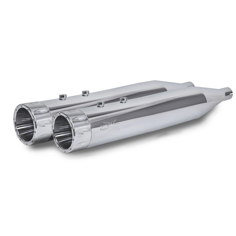 - RCX Exhaust 4.5″ Slip-on Mufflers, Chrome with Rival Chrome Tips.