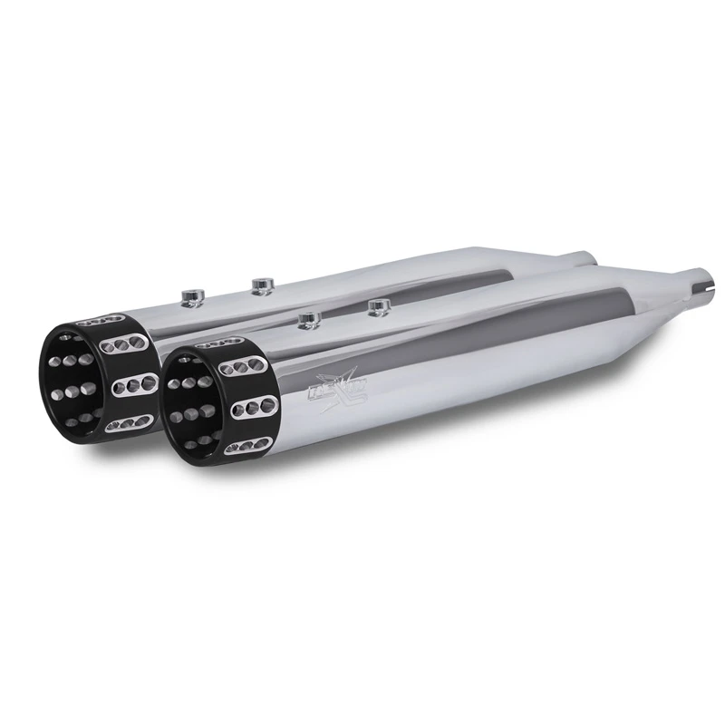 - RCX Exhaust 4.5″ Slip-on Mufflers, Chrome with Gatlin Eclipse Tips.