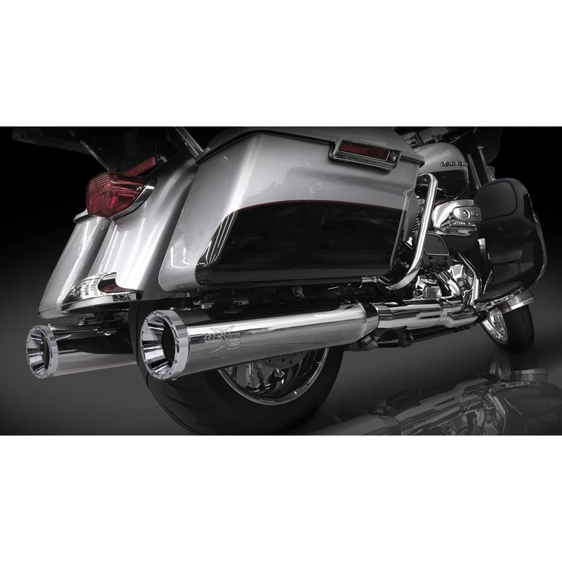 - RCX Exhaust 4.5″ Slip-on Mufflers for 2017 Harley Touring Models, Chrome with Rage Eclipse Tips.