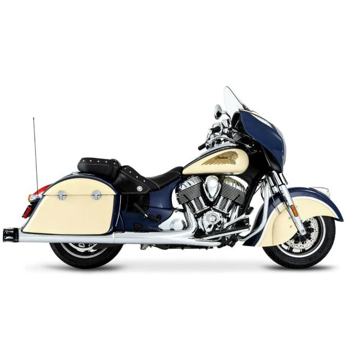 Rinehart’s Slip-on 4″ Exhausts with Merge End Caps are made specifically for Indian Roadmaster (2015-current) & Chieftain (2014-current).