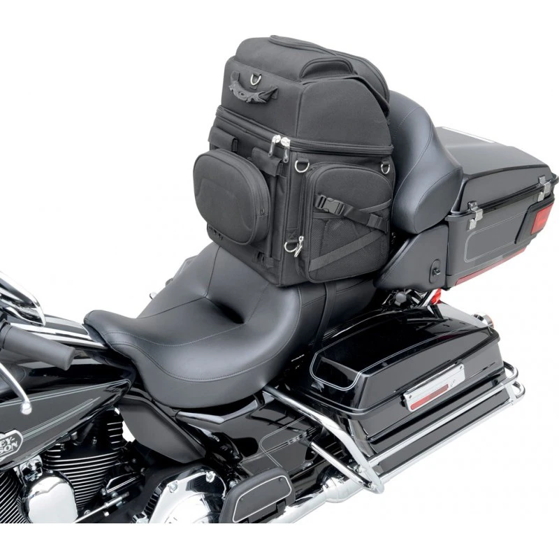- Two mounting systems included – a seat harness or adjustable sissy bar strap system easily attaches bag to your motorcycle’s seat, luggage rack, or sissy bar