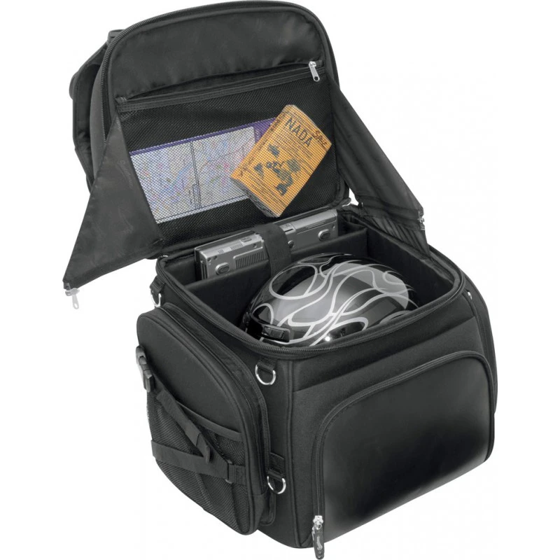 - Spacious top-loading main compartment is large enough to hold one full-face helmet plus other cargo