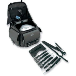 - Spacious top-loading main compartment is large enough to hold one full-face helmet plus other cargo