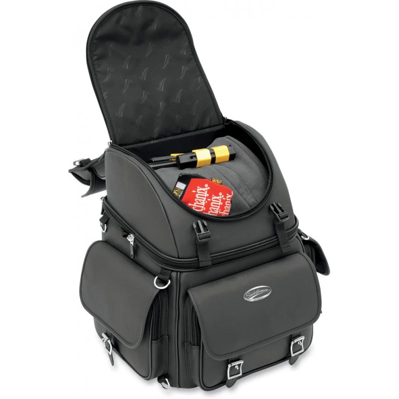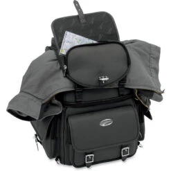 - Two mounting systems included – a seat harness or adjustable sissy bar strap system easily attaches bag to your motorcycle’s seat, luggage rack, or sissy bar