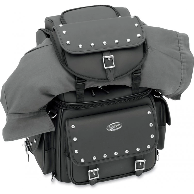 Saddlemen 3515-0121 BR3400EXS Sissy Bar Bag with Chrome Studs, Black.