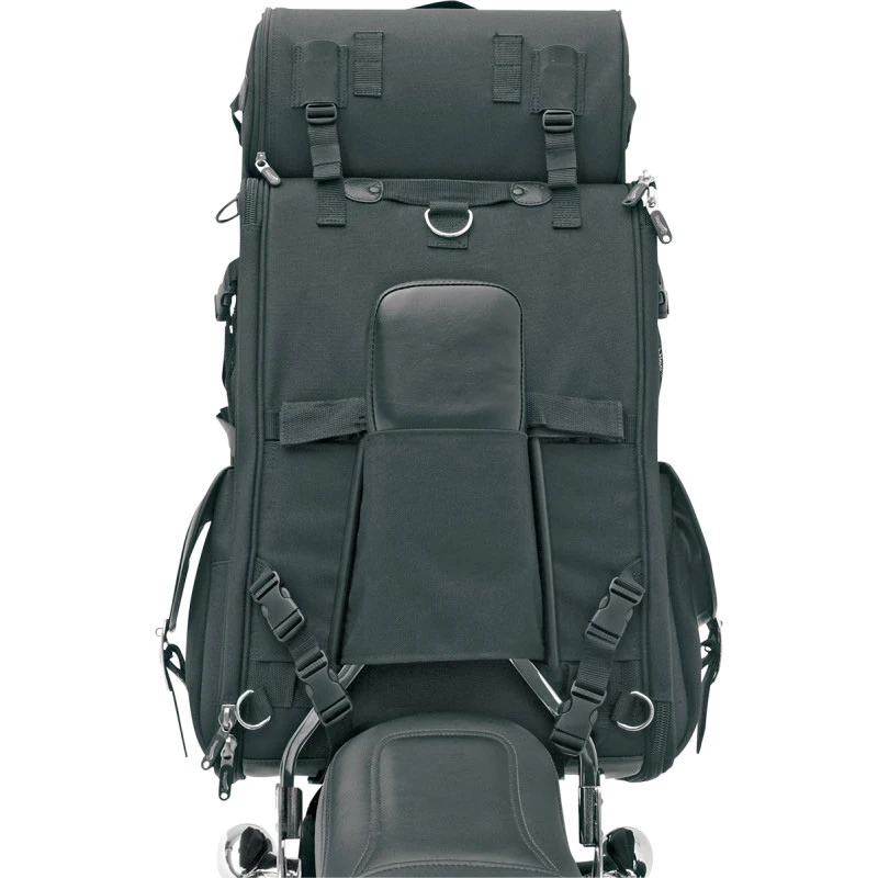 - Two mounting systems included – a seat harness or adjustable sissy bar strap system easily attaches bag to your motorcycle’s seat, luggage rack, or sissy bar