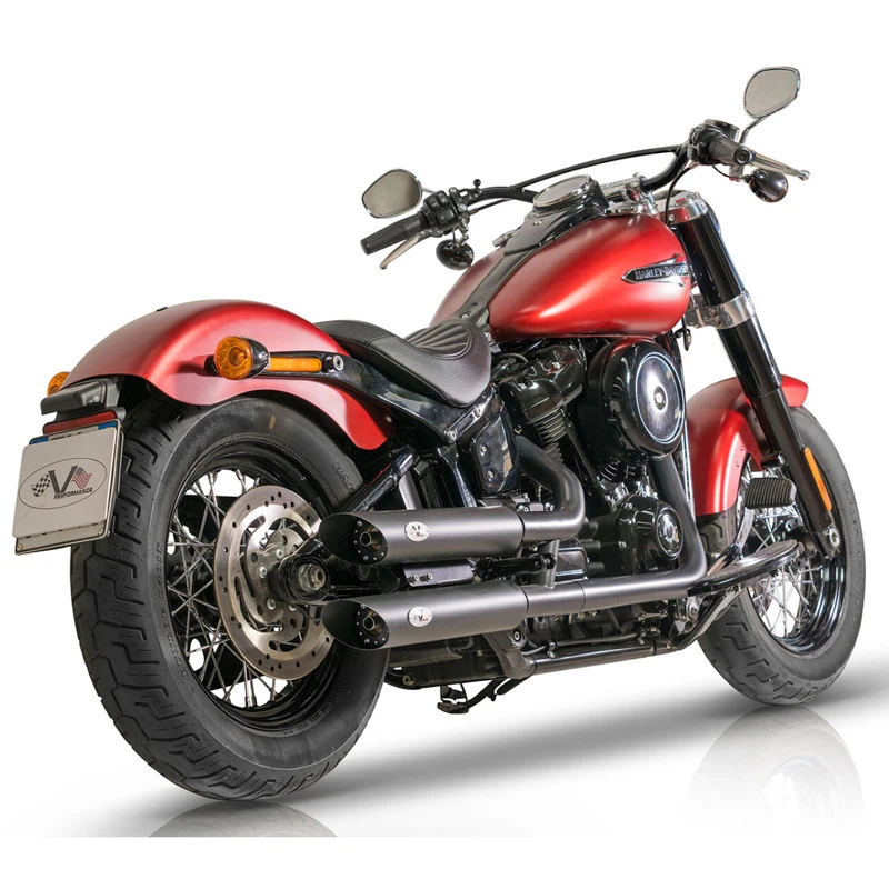 V-Performance’s AHAR0250039 Twin Slip-on Exhausts, Slash Cut Dark are made specifically for Harley-Davidson Softails (2021-current).