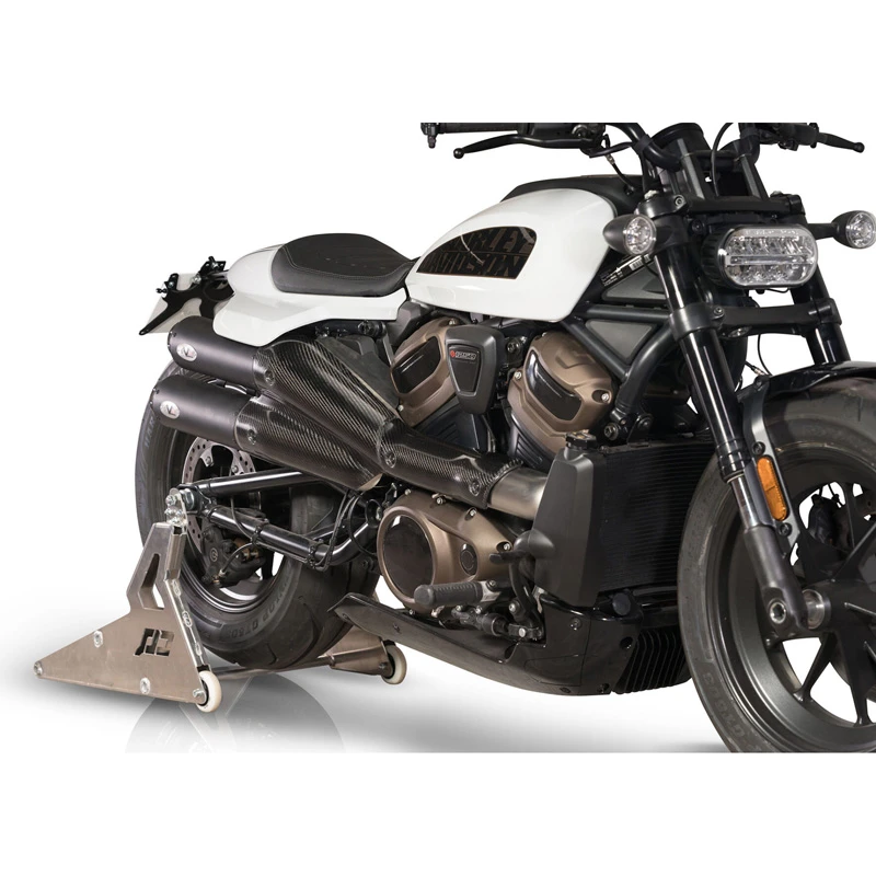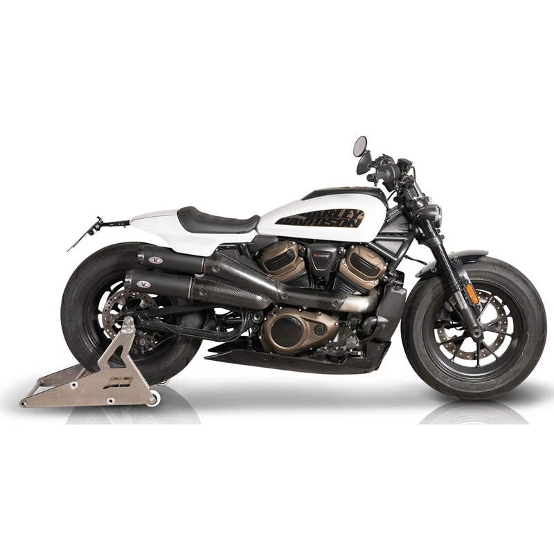 - Great news also for the plate holder, a steel laser-cut piece to relocate the license plate under the tail and give to the new Harley a real racing style touch.